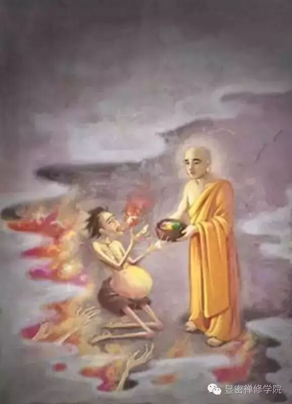 《盂兰盆经》中讲:释迦牟尼佛在世的时候,他的弟子目连尊者,已得道果,便欲济拔他的父母。目连尊者用天眼观察他的父母亡后在何处?发现亡母堕在饿鬼道中,苦痛万状,於是目连尊者就用鉢盛满了饭,请他的母亲吃,当他的母亲将要吃饭时,饭到嘴边,变成火炭,不得下咽。