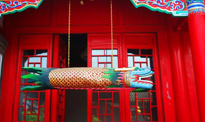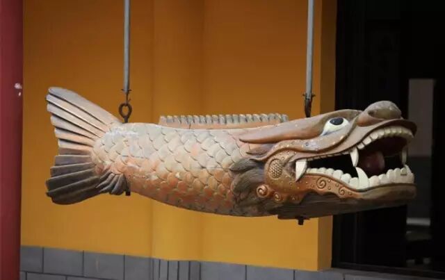 木鱼,顾名思义,木头做的鱼。各位,到中国大陆的佛寺,就会看到一个大木鱼。肚子剖开的,吊在五观堂旁边的一条大龙鱼。长江三峡的龙鱼,这里有一个故事。因为印度没有木鱼、罄,它们是中国的法器。