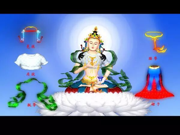 祈請上師諸佛菩薩加持提攜,金剛護法空行諸尊引導我進入普賢如來壇城,進入壇城遠遠的上空有一座發光的白色宮殿,真是潔白又美麗,好多七彩的彩虹在上方出現,好似搭起彎彎的拱橋,上方有天女,從彩虹橋上徐步輕舞,不知這白色的宮殿是那位佛菩薩住的?