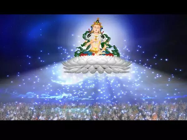 我好似看到上師微笑的臉,也看到一副盤坐的雙腿,雙腿張開從密輪到身體頂輪中間是個浩瀚的黑空,無盡延展的雙手雙腿將整個黑空納進入身體中間的虛空中,容納後瞬間變成一朵巨大潔白的蓮花,整個宇宙多維流淌的空間,只有千瓣的白蓮花在綻放光芒。心好震撼,佛父佛母與上師是一不是二,上師到底有多少變化啊!