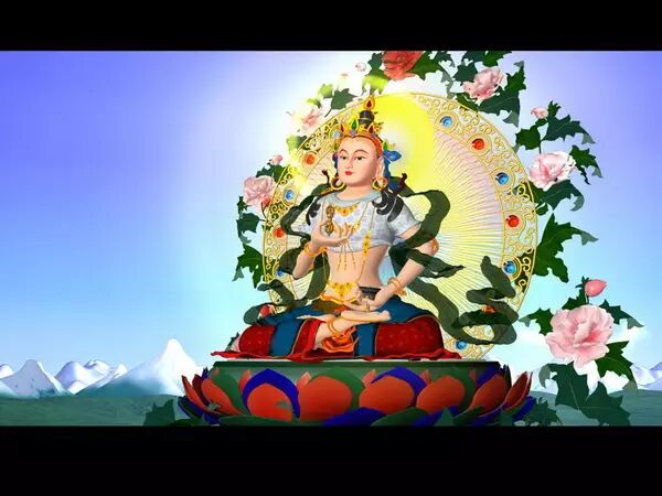 以前有些人觉得金刚萨埵的修法太复杂,一直观想不来,今天我就给你们一个简单的修法——法王如意宝的《如意宝珠》。开始时要皈依、发心,然后在前方观想金刚萨埵,金刚萨埵发光遍布十方,接着全部融入自己,所有众生也都变成金刚萨埵的形象,在这样的境界中回向。
